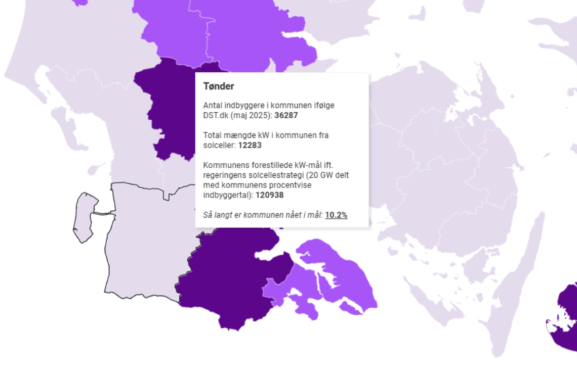 Selv om Tønder ligger langt fra målet, overgår kommunen faktisk flere af landets største – både København, Odense, Aalborg og Esbjerg – målt på opsatte solceller per indbygger.