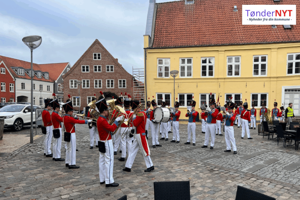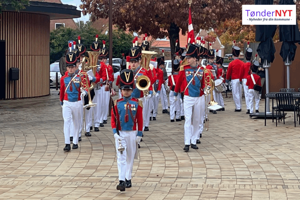 Tirsdag formiddag lagde Roskilde Garden vejen forbi gågaden i Tønder med musik og march