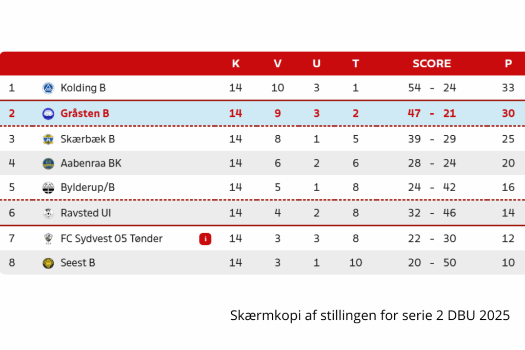 Resultatet betyder, at FC Sydvest 05 rykker ned i Serie 3. Dermed er det Skærbæk Fodbold, der er den bedst placerede fodboldklub i Tønder Kommune efter vinterpausen.